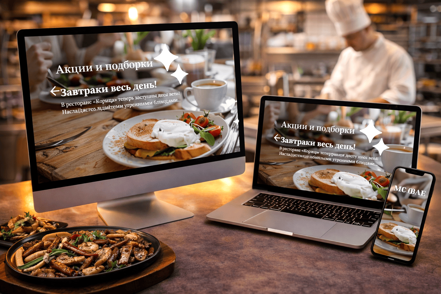 Особого внимания заслуживает мобильная версия. Лучшие сайты для кафе и ресторанов давно перестали воспринимать смартфон как уменьшенную копию десктопа. На телефоне или планшете портал ощущается как самостоятельная витрина: крупная, удобная, быстрая. Заказ оформляется без усилий, а интерфейс не мешает главному — выбору еды.
